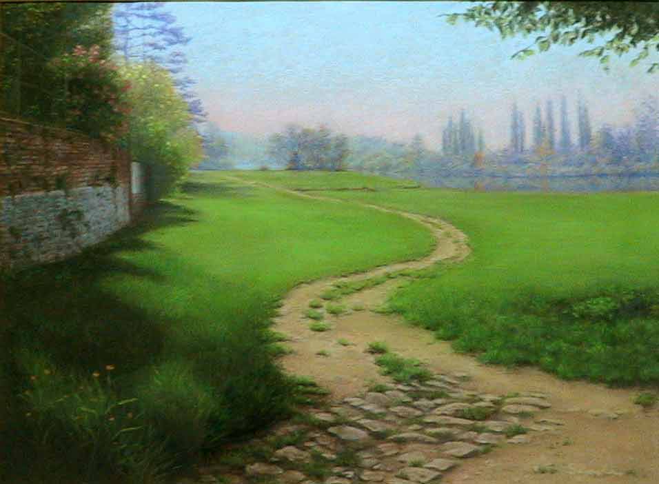 フランスの詩情豊かな風景に魅了され、滞在中に習得したパステル画法によって、私なりに風景