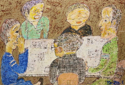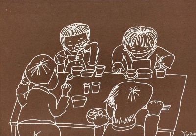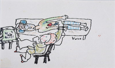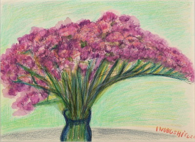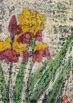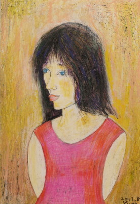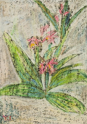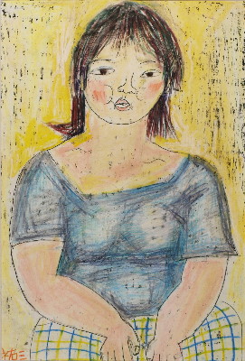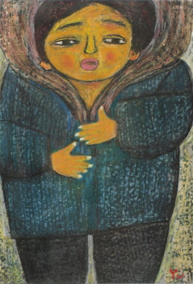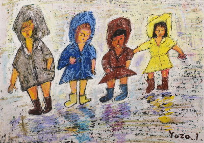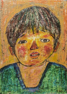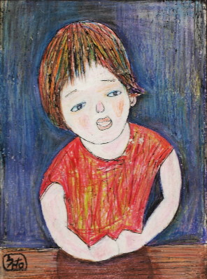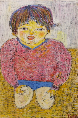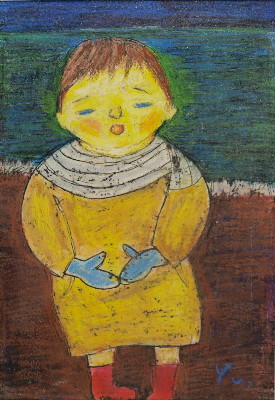 トアギャラリーでの4回目の個展です。前回からろう画を中心に描いてきました。年と共に子供にかえってゆくようで、画用紙にクレパスやコンテをつかって描いています。深夜、画用紙にローソクを塗りながら、ぶつぶつ独り言をいっています。絵は見た瞬間にわかってしまうおそろしいものです。個展の度にドキドキします。それでも、見ていただけたら、無上の喜びです。(14)