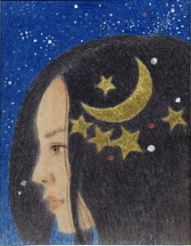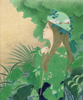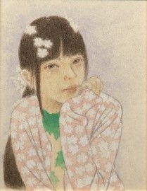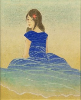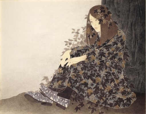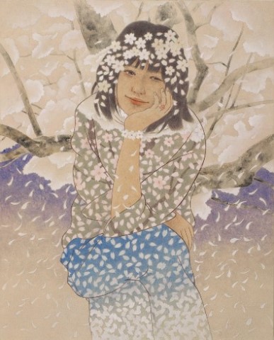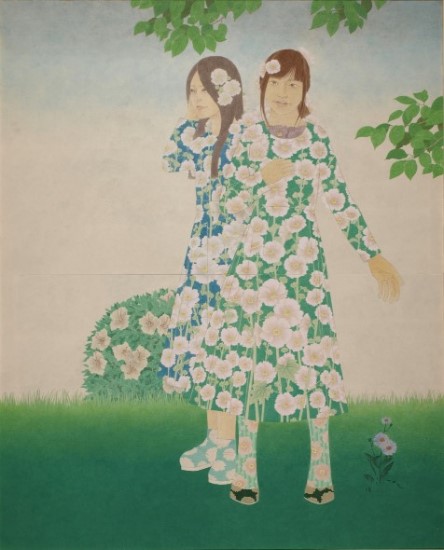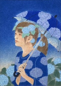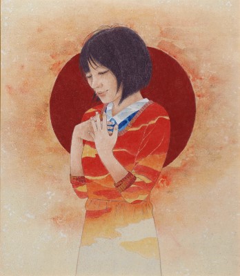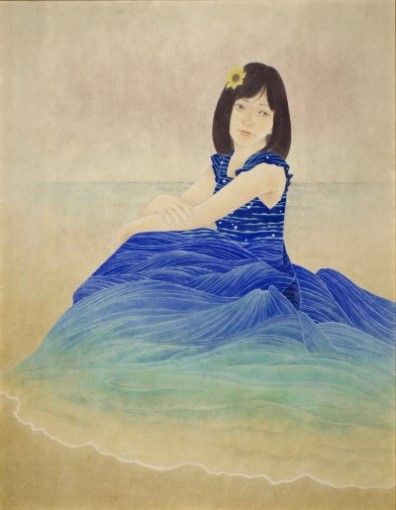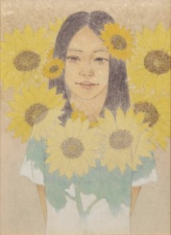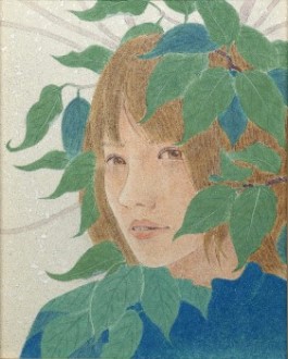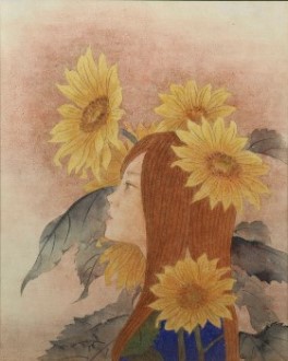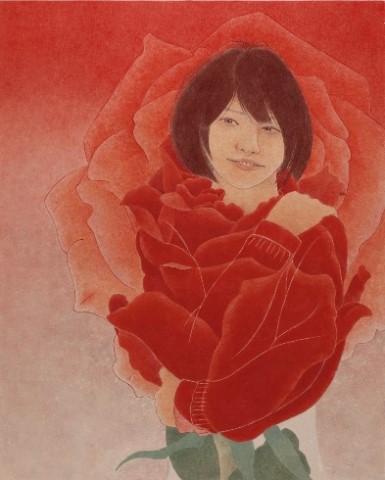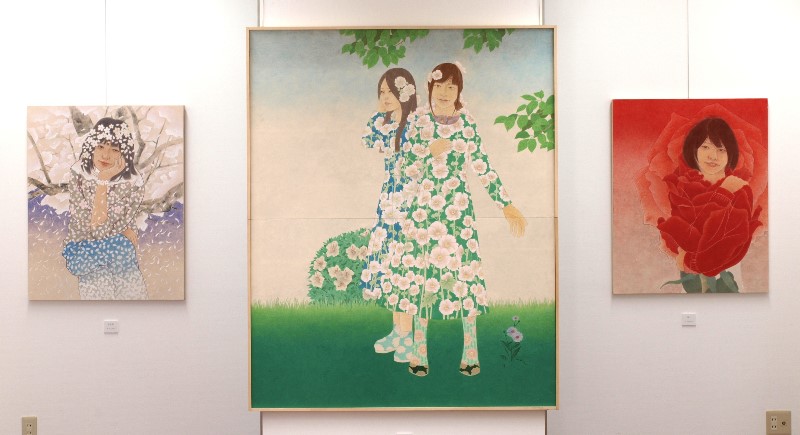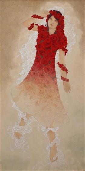 女性と花をモチーフとし一体化させた作品を描いています。人の心に届く物をと思い制作するうちに現在の表現方法になりました(19)。