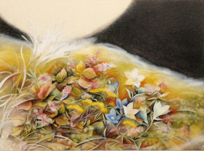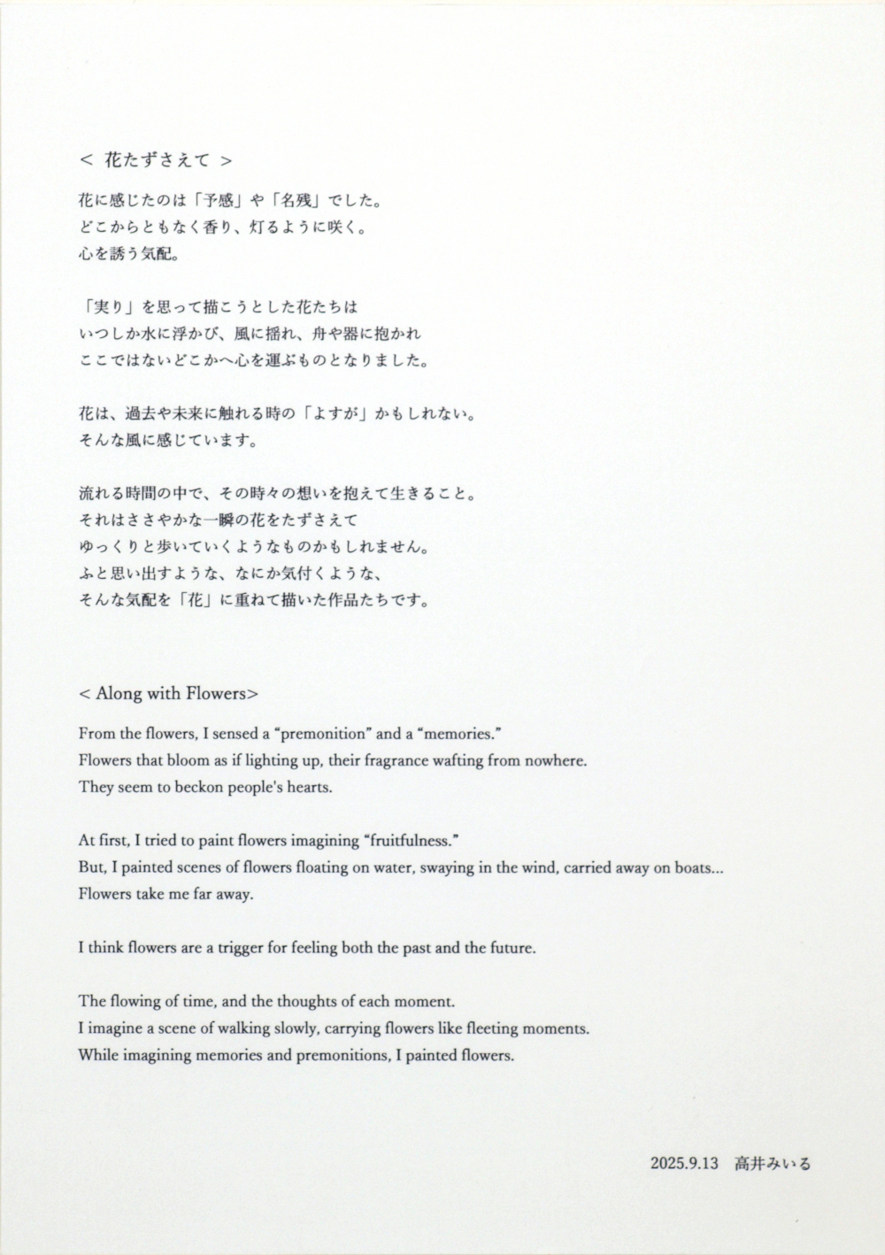 時の流れやうつろい、そこに留まる心の動きを心象風景として描いています。今回は「花」をテーマに、予感・名残り・またたきに想いを馳せました。前回の「水」「石」とはまた異なる景色、どうぞゆったりとご覧ください。(25)。