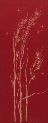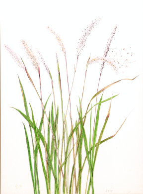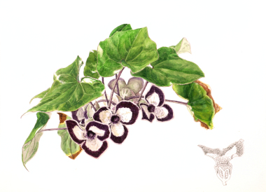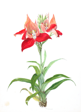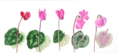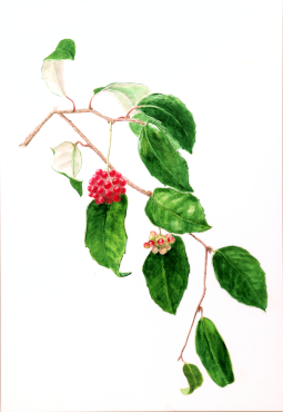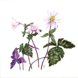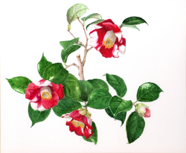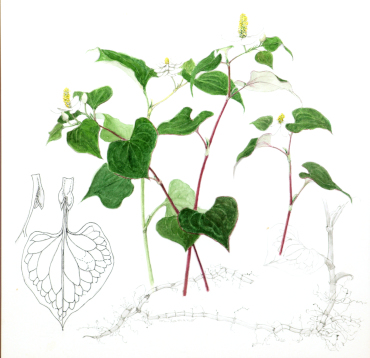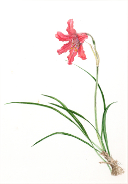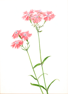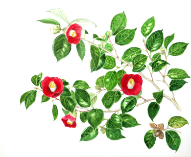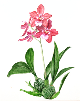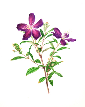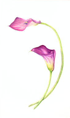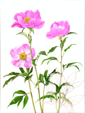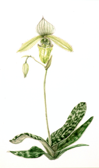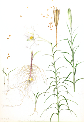ボタニカルアートを始めたのは40歳を過ぎてからで、「40の手習い」といったところです。植物の美しさを描くうちに、もっといろいろな花を観てみたいと海外へも出かけカムチャッカの黄色いアツモリソウ、ブータンの青いケシ、カナリア諸島のエキウム、南アフリカのお花畑、オーストラリアのランと食虫植物、コスタリカのカトレアなどを観てきました。まだまだ観てみたい花がありますが、体力がついてこないのが残念です。(25)。