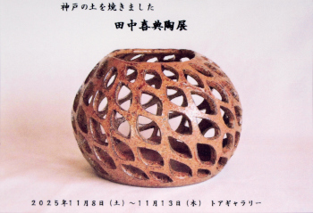 神戸の風土を焼くことをテーマとして、作陶しております。神戸市内で採集した土を精製した粘土で生地を作り、その土地で育った様々な植物を焼いて作った灰を中心に調合した釉薬を施し、焼きあげました。神戸の大地が焼かれたものを、ぜひご高覧下さい。(25)。