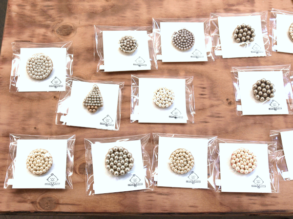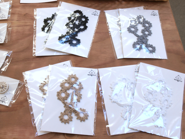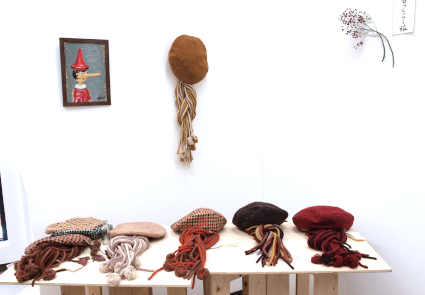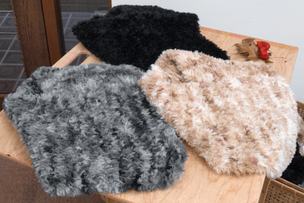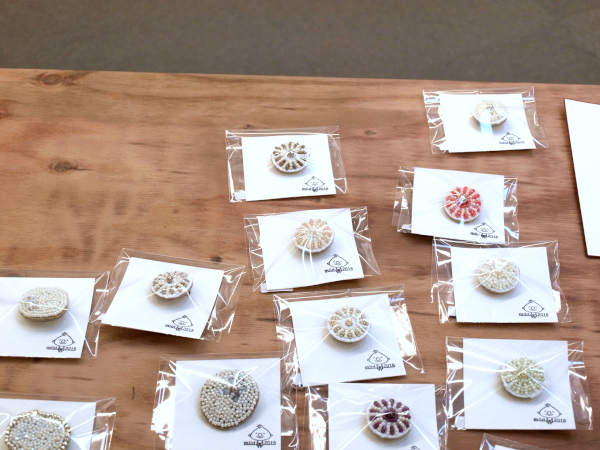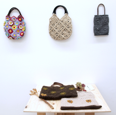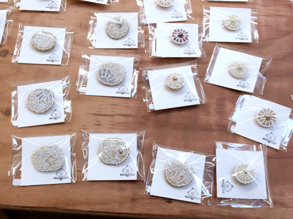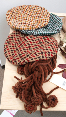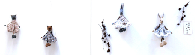●小ぶりサイズのビーズ刺繍ブローチ(パールとビーズ、シックな色の原毛に近いメリノウールとビーズ)。●ちょこんと座って足をぶらぶら、うさぎと猫のおすわりぬいぐるみ。●英国ツイードとちどり柄のリバーシブルジレと、HACO帽子をブラウスとコーディネート展示。●あったかいモチーフバッグ・・・etc。会場で皆様をお待ちしてます。(25)。