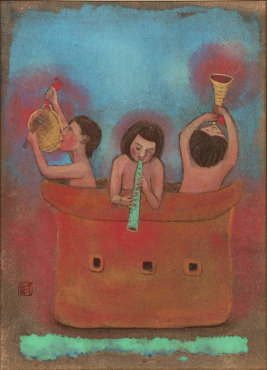 | 國政一真日本画展2024/あかときやみの舞 | 國政一真日本画展2025/雲を紡ぐひと |