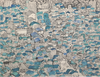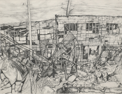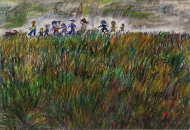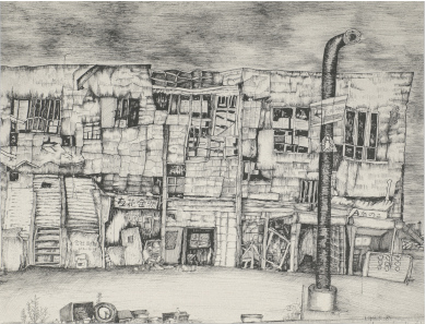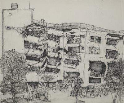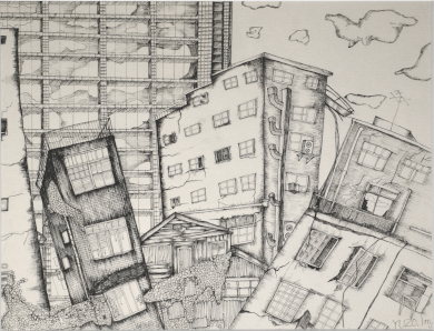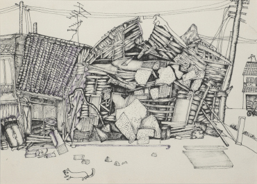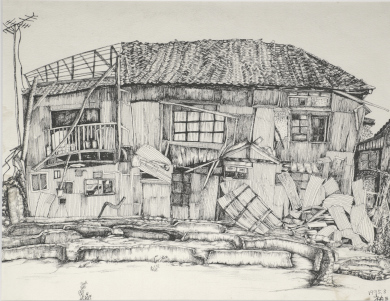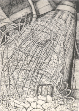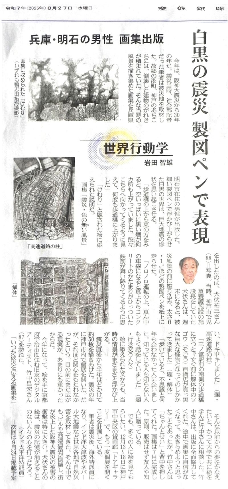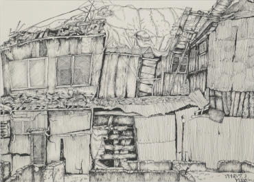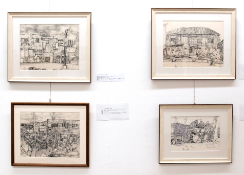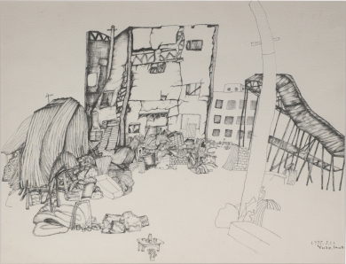 ペン画は1995年の春から秋にかけて神戸市内を歩いて描きました。被災の街で見たことをありのままに正確に記録するようにと思っていました。ロ画は、昔出会った子供の顔思い出して描きました。ご高らん頂ければ幸せです。 (25)。