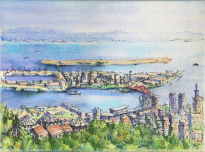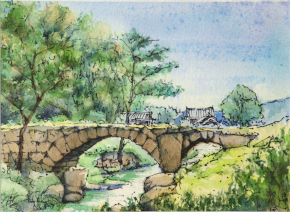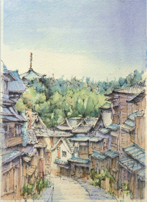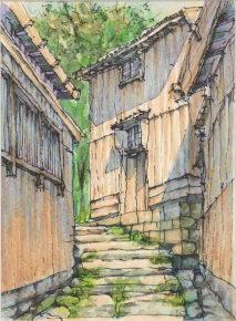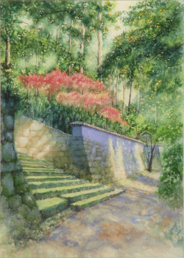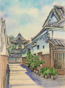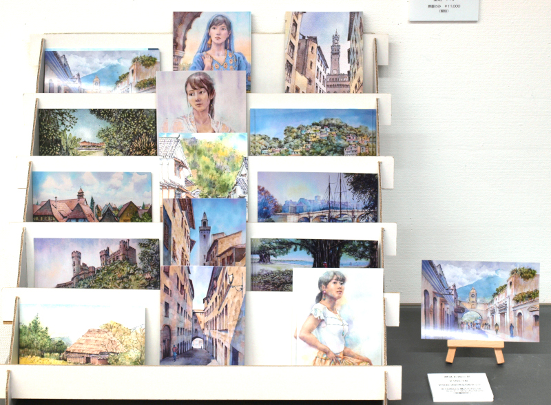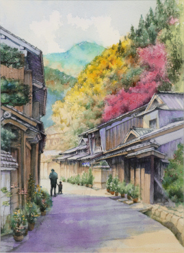 人と町、人と自然の関係を大切にしています。懐かしい日本の風景、異国情緒あふれる海外の街並み、今を生きる女性像を透明水彩で描きます。光と水が交差する一瞬の美しさを、ぜひ画廊で体感してください。(26)。
